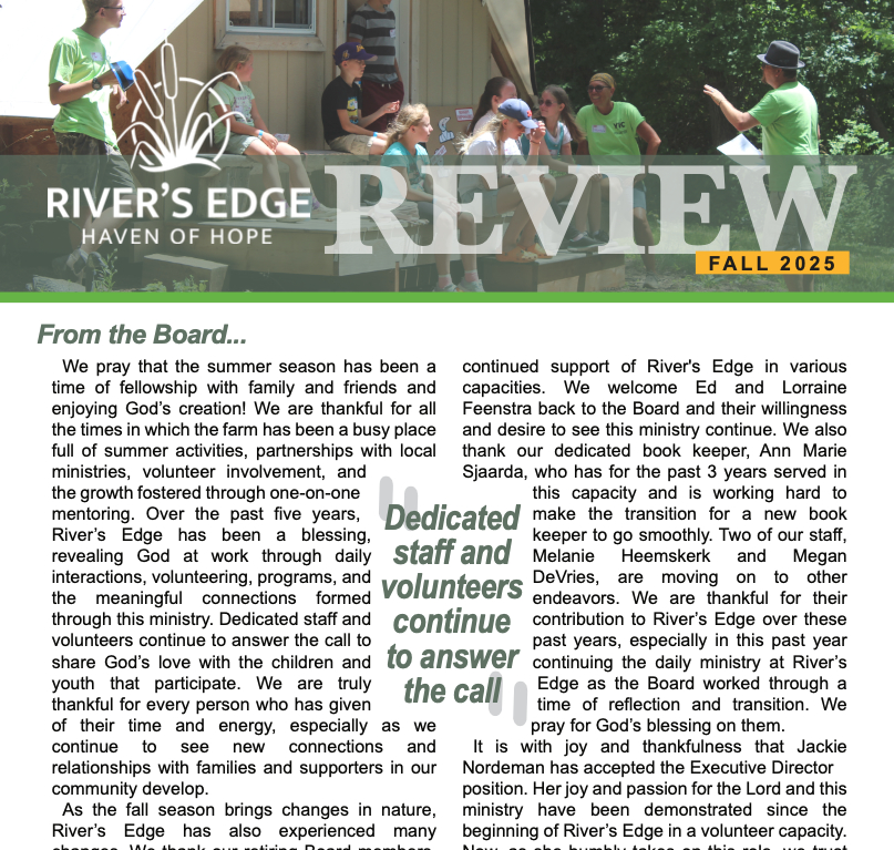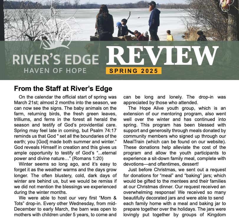 Our quarterly newsletter is called the River’s Edge Review. Look for the printed version in your church mailbox or see below for the latest issue as well as past issues.